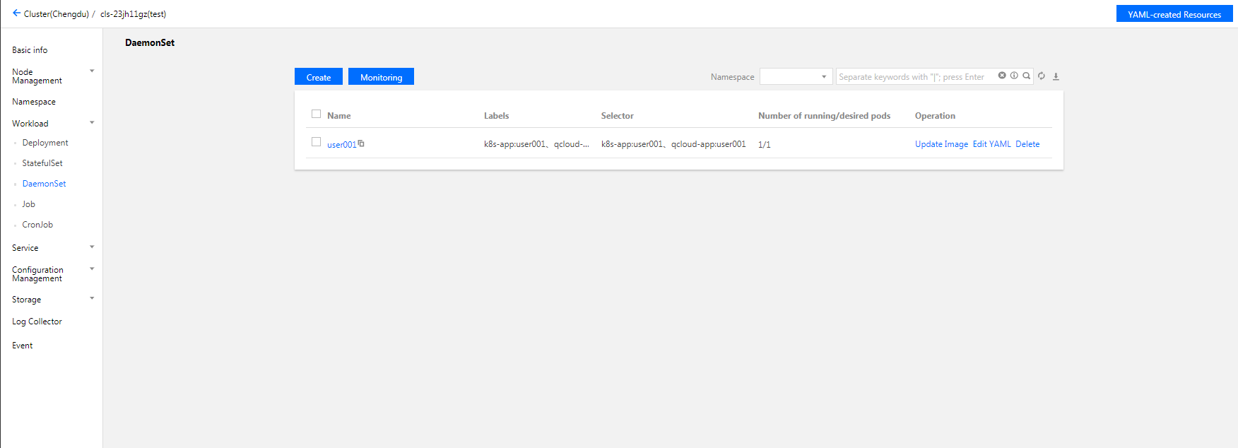3.[Workload]>[DaemonSet]을 선택하여 DaemonSet 페이지로 이동합니다.