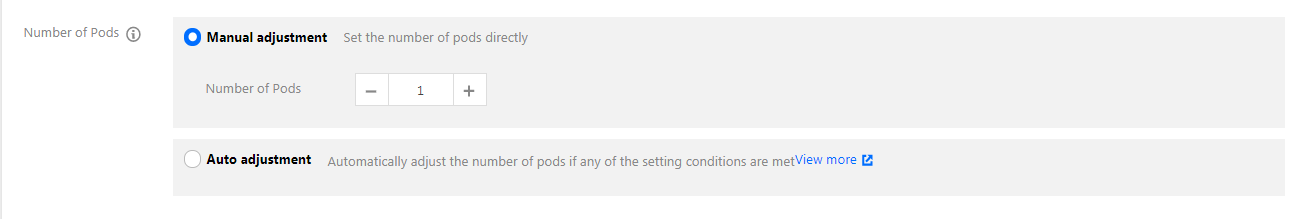 Manual adjustment: 포드 수를 설정합니다. 이 예시에서 포드 수는 1로 설정되어 있습니다. ‘+’ 또는 ‘-’를 클릭하여 포드 수를 변경할 수 있습니다.