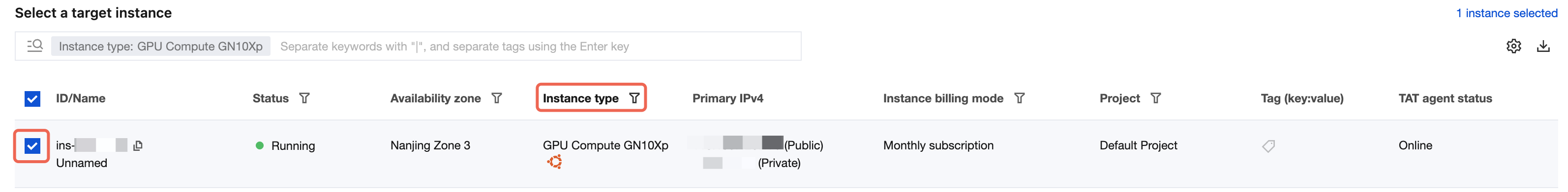 3. Go to the Run Command page, select the GPU instances that require command execution. You can use the Instance Type Filter to identify GPU instance types: