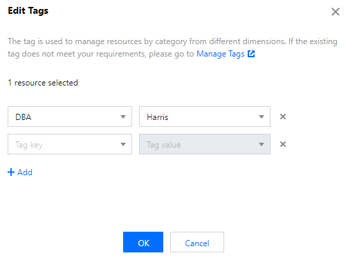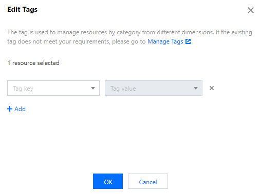 1. DTS 콘솔에 로그인하고 왼쪽 사이드바에서 데이터 마이그레이션을 선택하고 대상 마이그레이션 작업을 선택한 후 페이지 상단에서 태그 편집을 클릭합니다. 2. 팝업 창에서 태그를 선택합니다. 태그를 추가하려면 추가를 클릭합니다.