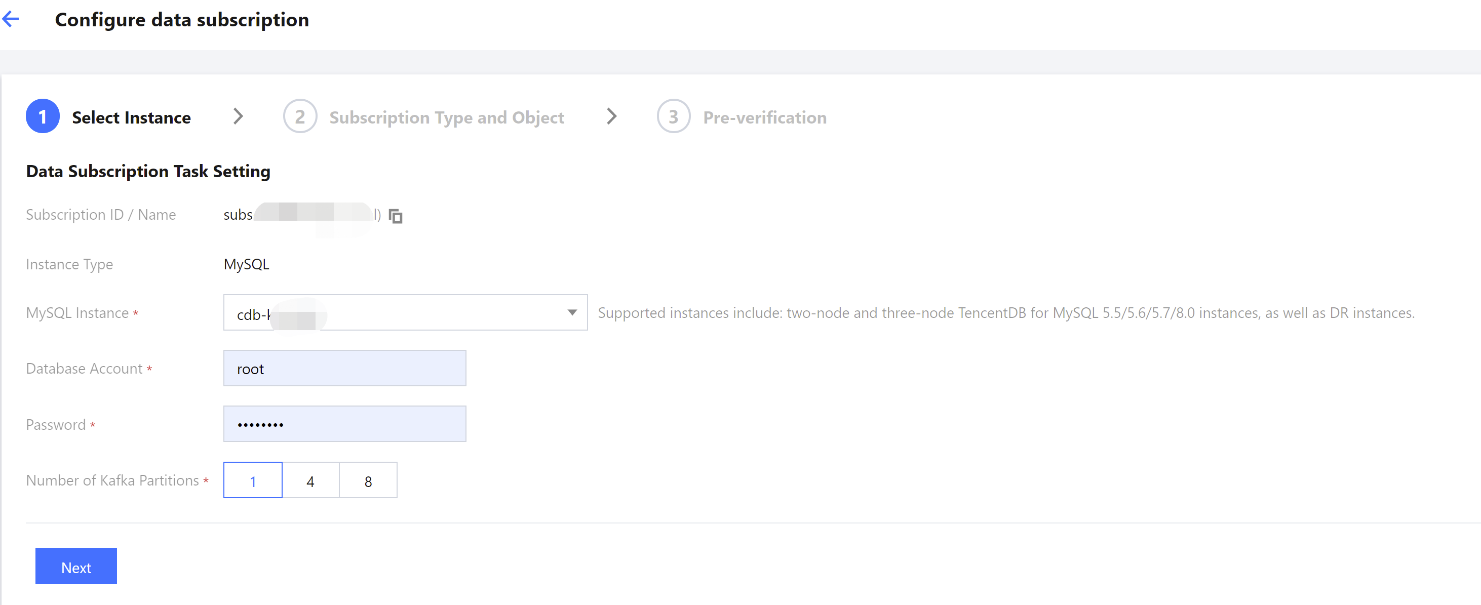 4. 데이터베이스 구독 설정 페이지에서 적합한 설정을 선택하고 다음 단계를 클릭합니다.