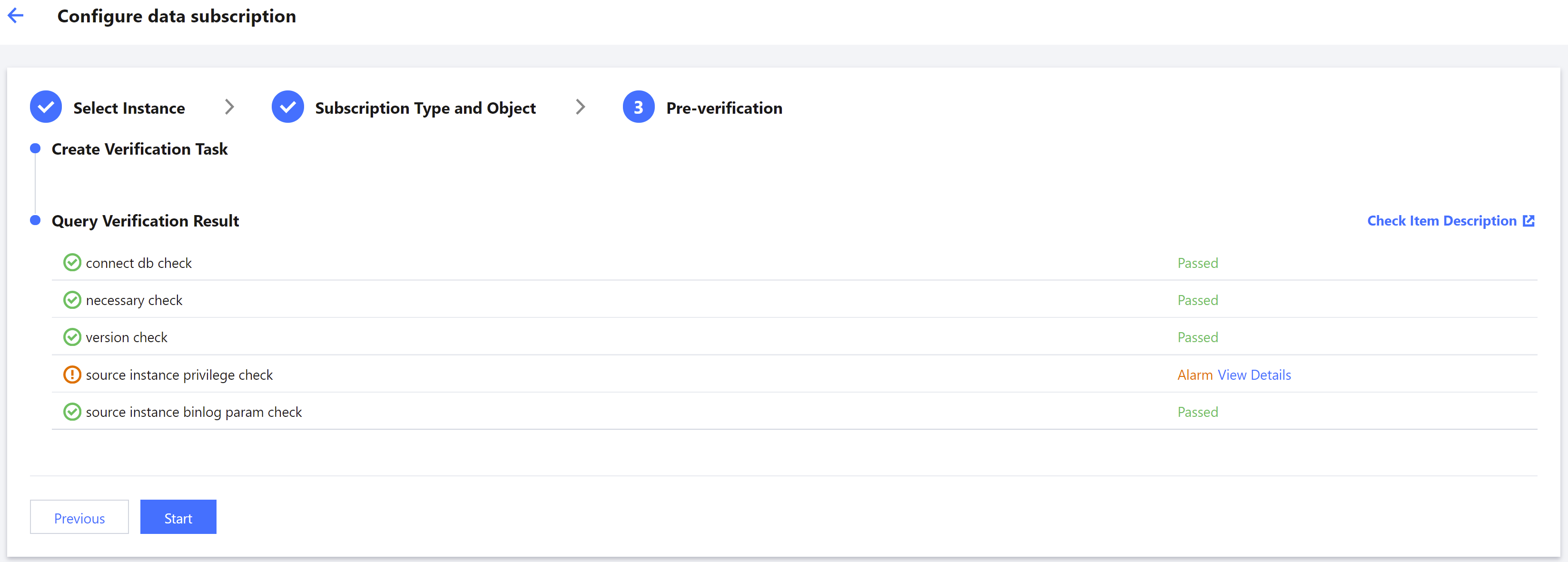 6. 사전 인증 페이지에서 2 - 3분에 걸쳐 사전 인증 작업이 실행됩니다. 사전 인증이 완료된 후, 실행을 클릭하여 데이터 구독 작업 설정을 완료합니다.
