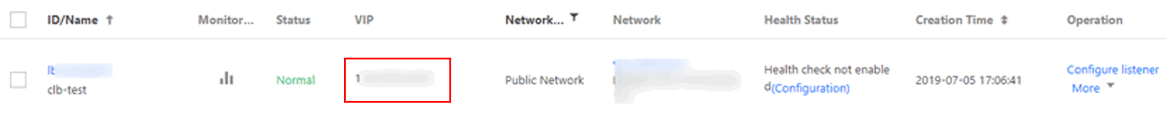 3. CLB 인스턴스 관리 페이지로 돌아가서, 후속 DTS 구성에서 사용될 VIP를 확인합니다.