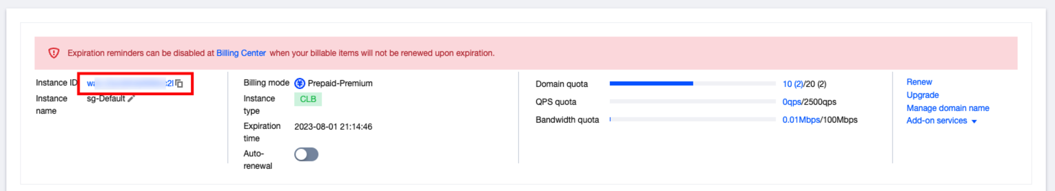 1. Log in to the WAF console. In the left sidebar, select Instance Management. 2. On the instance management page, click Instance Name to open the sidebar.