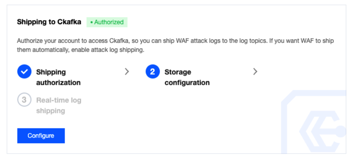 2.1 In the Ship to CKafka module on the log shipping page, click Configure to trigger the pop-up window for authorization.