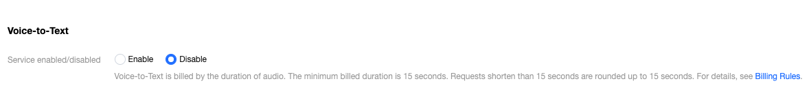 음성-텍스트 변환 서비스는 시간에 따라 과금됩니다. 필요에 따라 활성화할 수 있습니다.