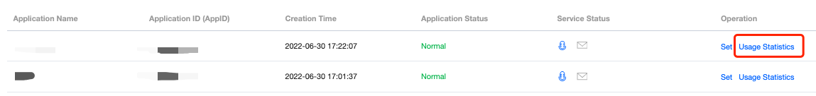 GME 콘솔에 로그인하고 조회할 애플리케이션의 사용량 통계를 클릭합니다. 사용량 통계