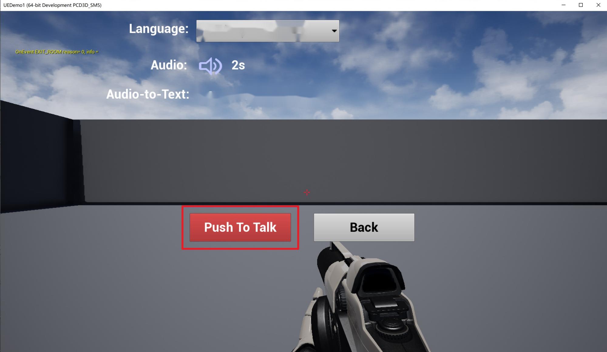 void UExperientialDemoViewController::onCheckSpatializer(bool isChecked) {char buffer[256]={0};// snprintf(buffer, sizeof(buffer), "%s3d_model", getFilePath().c_str());snprintf(buffer, sizeof(buffer), "%sgme_2.8_3d_model.dat", getFilePath().c_str());int ret1 = ITMGContextGetInstance()->GetAudioCtrl()->InitSpatializer(buffer);int ret2 = ITMGContextGetInstance()->GetAudioCtrl()->EnableSpatializer(isChecked, false);FString msg = FString::Printf(TEXT("InitSpatializer=%d, EnableSpatializer ret=%d"), ret1, ret2);GEngine->AddOnScreenDebugMessage(INDEX_NONE, 10.0f, FColor::Yellow, msg);}