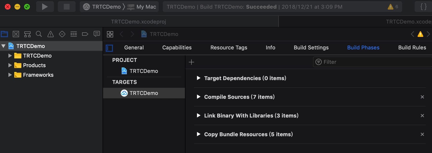 Objective-C 또는 Swift 인터페이스를 통해 TRTC SDK 참조