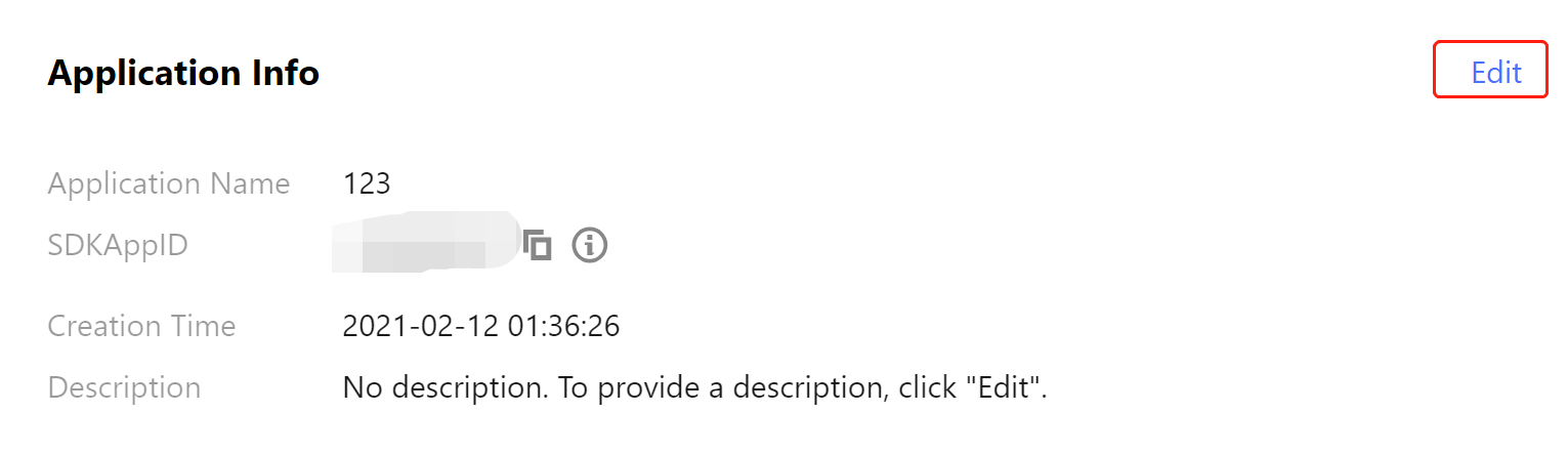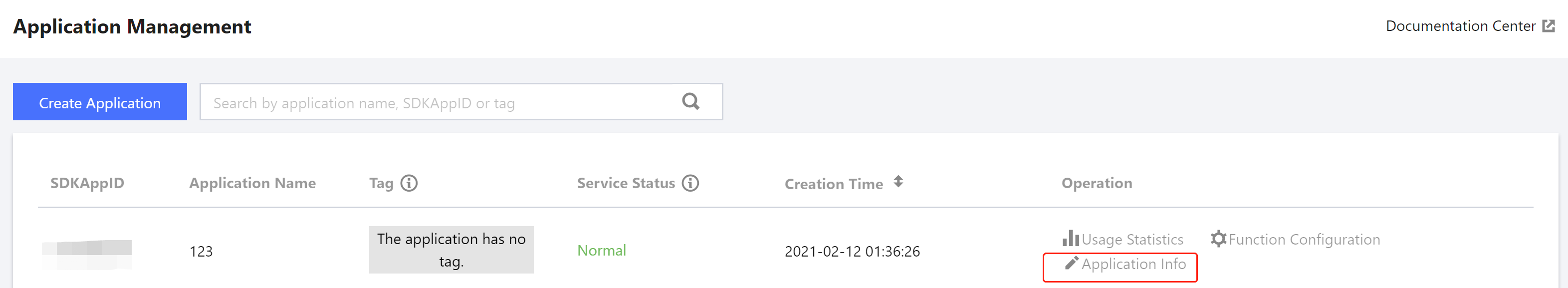 애플리케이션 생성 완료 후 자동으로 생성되는 SDKAppID는 애플리케이션의 고유 식별 번호로, 음성 API 인터페이스 호출 시 해당 매개변수를 제공해야 합니다.