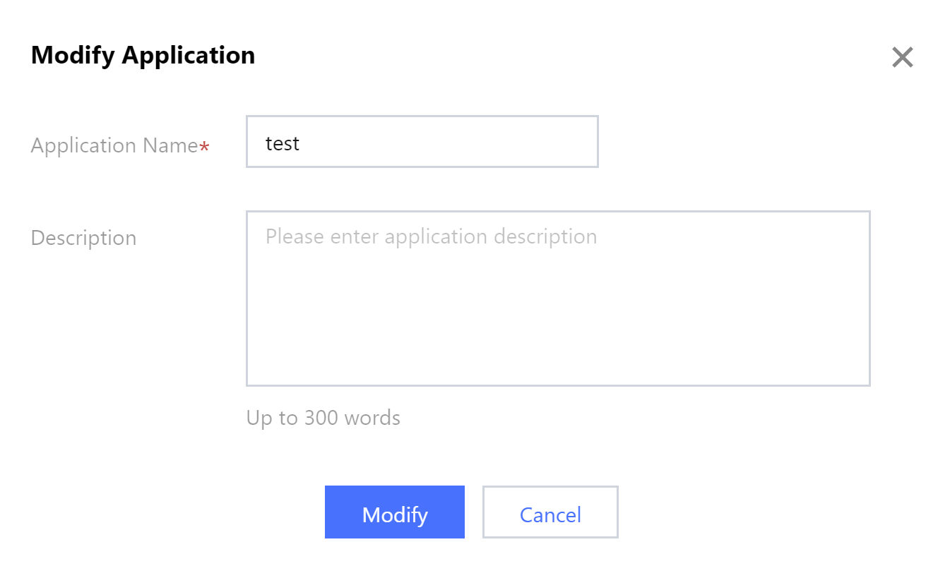 애플리케이션 소개 입력창에는 숫자, 중문, 영문, 언더바만 입력할 수 있으며, 최대 300자까지 입력할 수 있습니다.