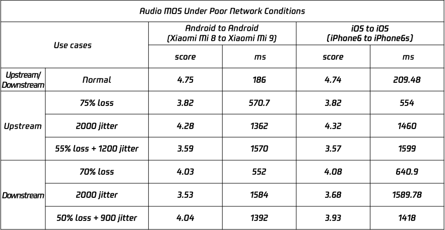 end to end 딜레이 | end to end 딜레이는 발신측 음성 수집부터 수신측에 재생될 때까지의 시간을 의미 |