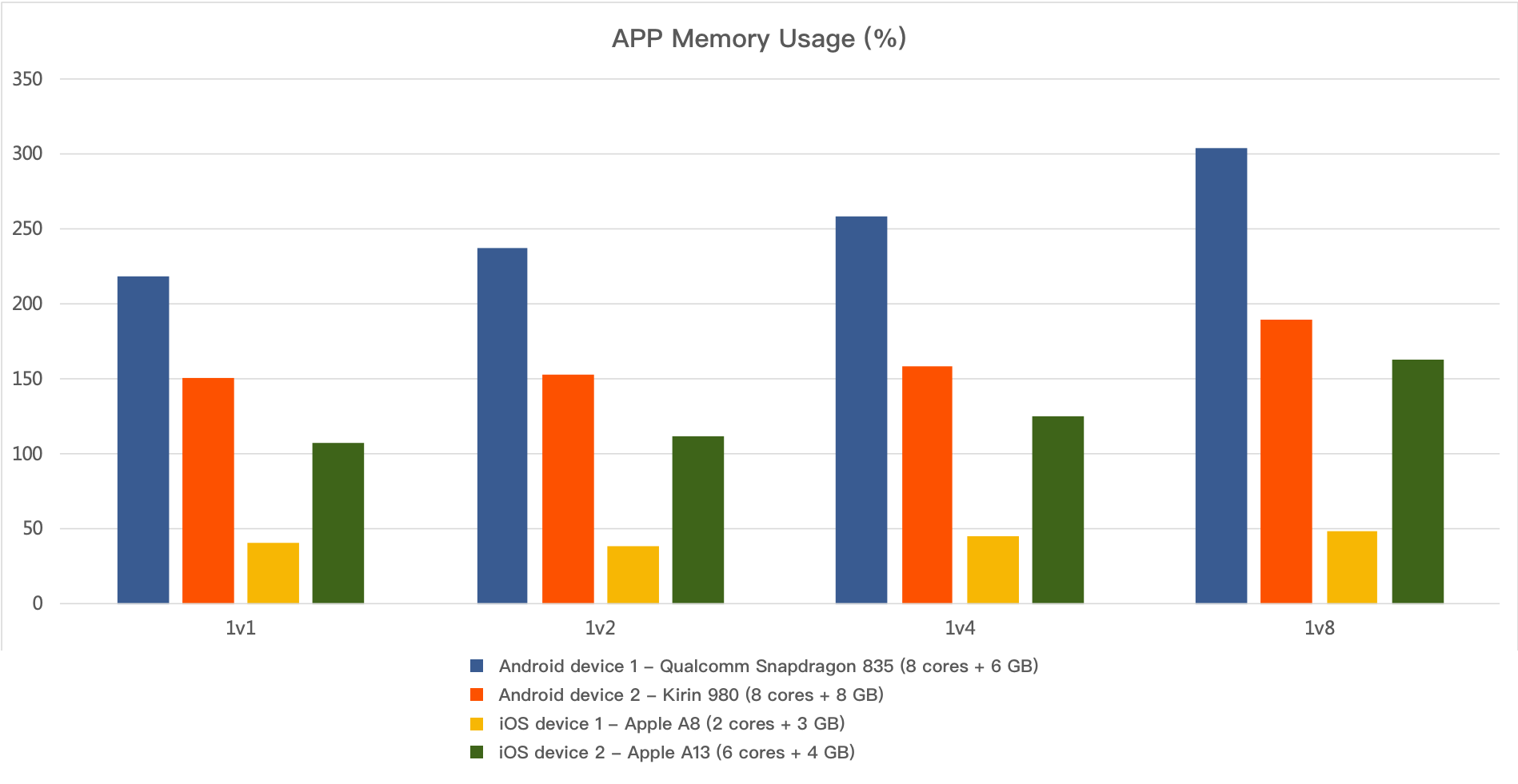 메모리 사용률 | Android | PSS Memory, 통계 결과는 Android Java API 표준 결과와 일치하며, Meminfo와도 일치합니다. |