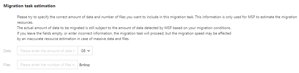 The migration speed is subject to the lowest speed at each stage of the migration process and is affected by the network transmission speed and maximum concurrency level. For more details, see Estimating File Migration Time.