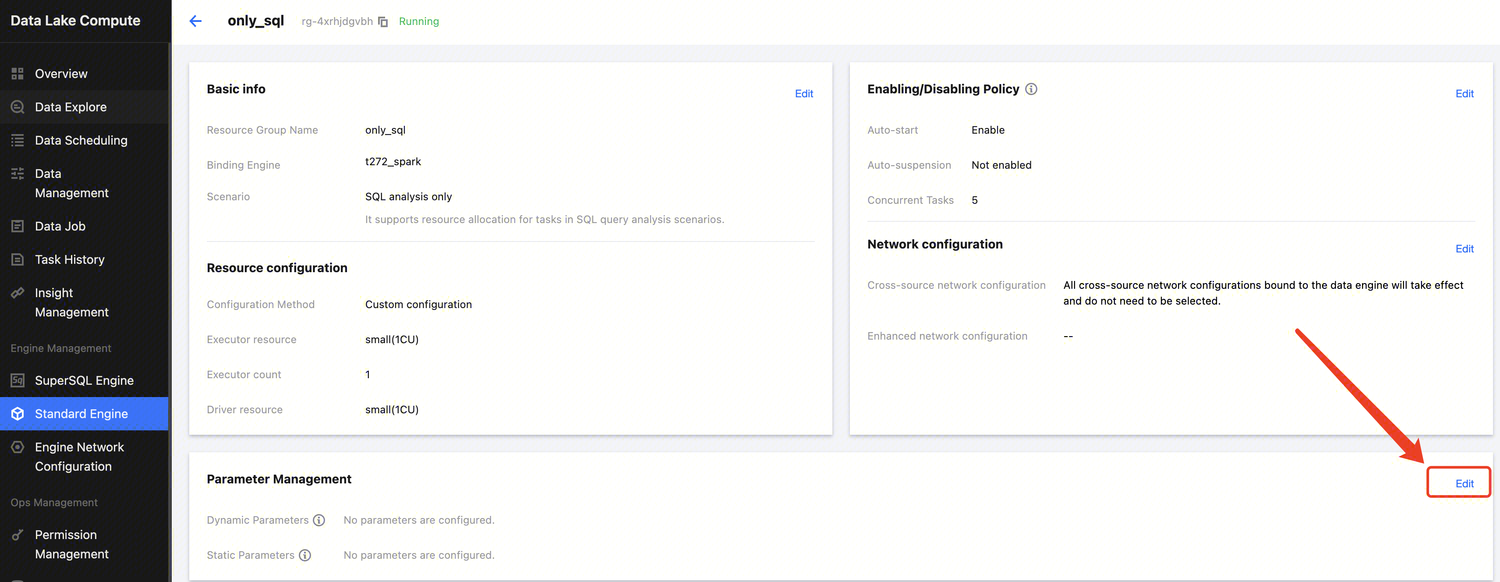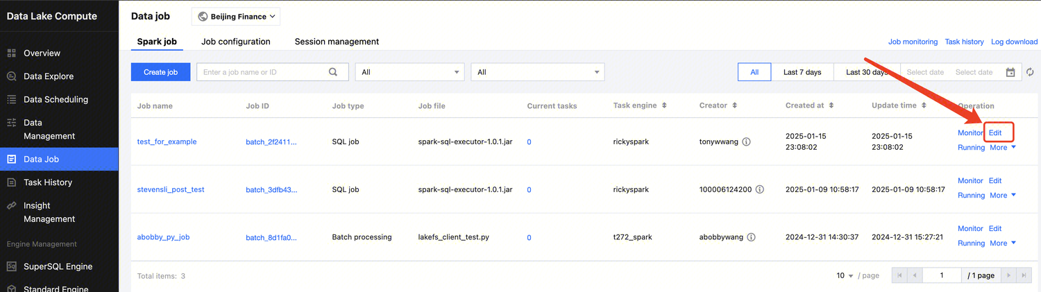 1. Log in to the DLC console and select the service region. Ensure the logged-in user has the permission to edit the data table. 2. Go to Metadata Management > Database via the left sidebar, and click the database name where the data table is located to enter the database management center page. 3. Find the data you need to edit, and click the Edit button on the right to make changes.