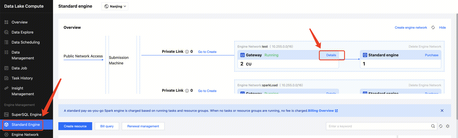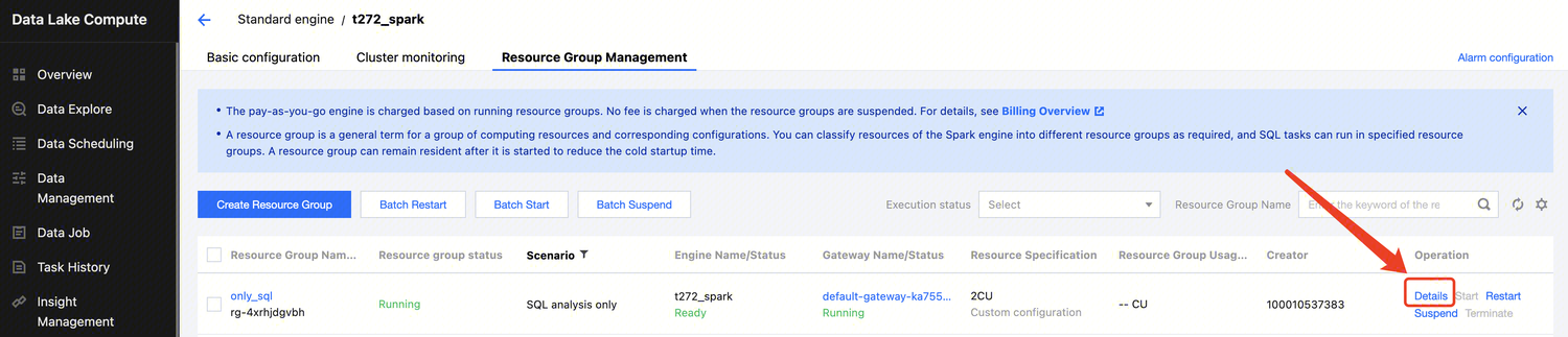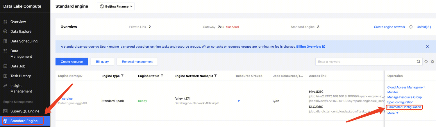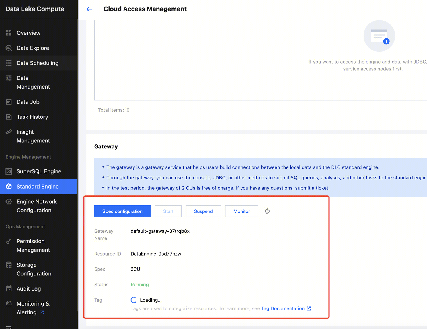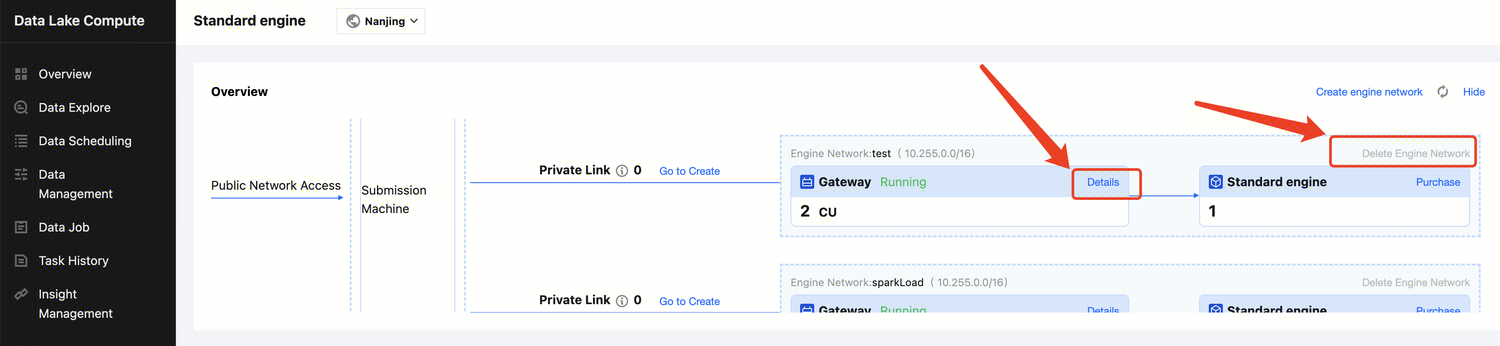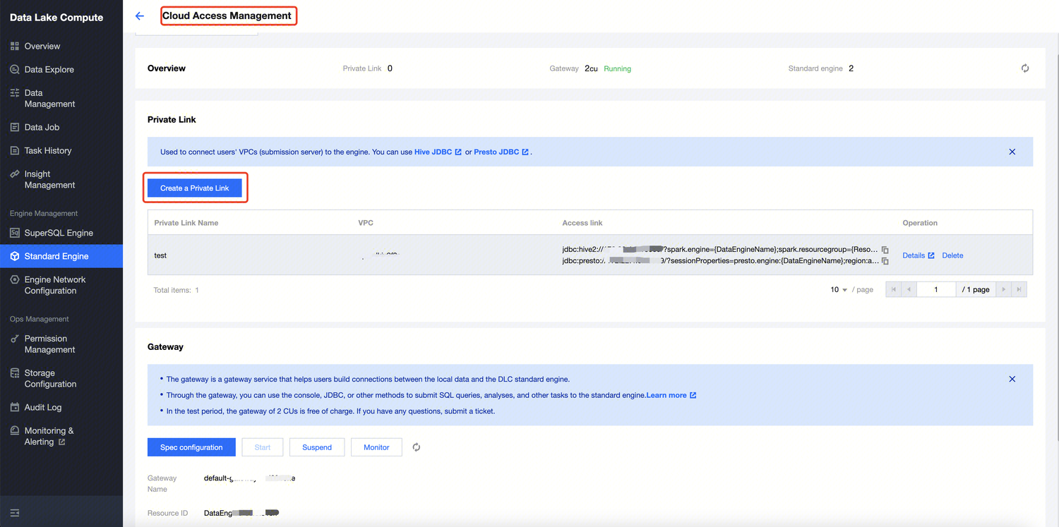 When a data table under the DataLakeCatalog directory is deleted, all data in the data table will be cleared. Please operate with caution.
