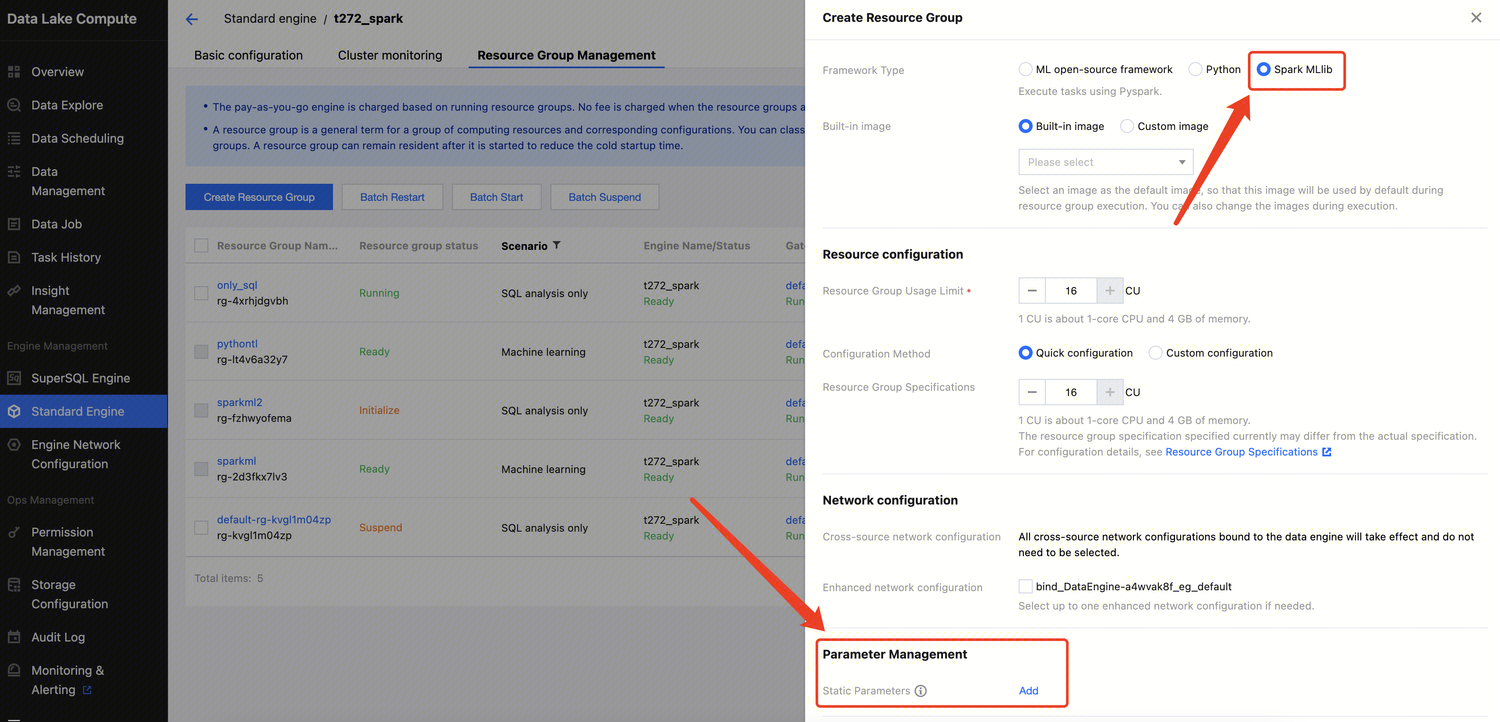 The Data Management module supports managing both native tables and external tables in DLC managed storage.