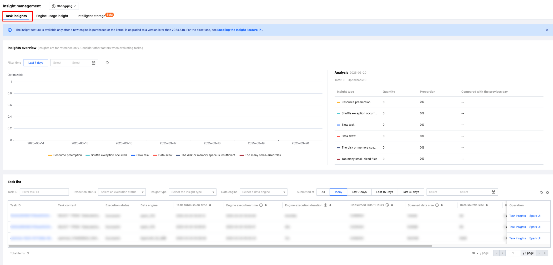 Data table management supports querying partition information related to data tables. With the partition information, you can view details, including record quantity, file quantity, data storage capacity, and update time for each partition of the table.