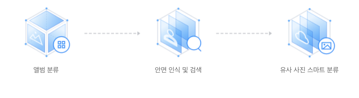 안면 탐지 및 안면 검색을 통해 앨범에서 비슷한 얼굴의 사진을 취합할 수 있어, 손쉽고 스마트하게 앨범을 정리할 수 있습니다.