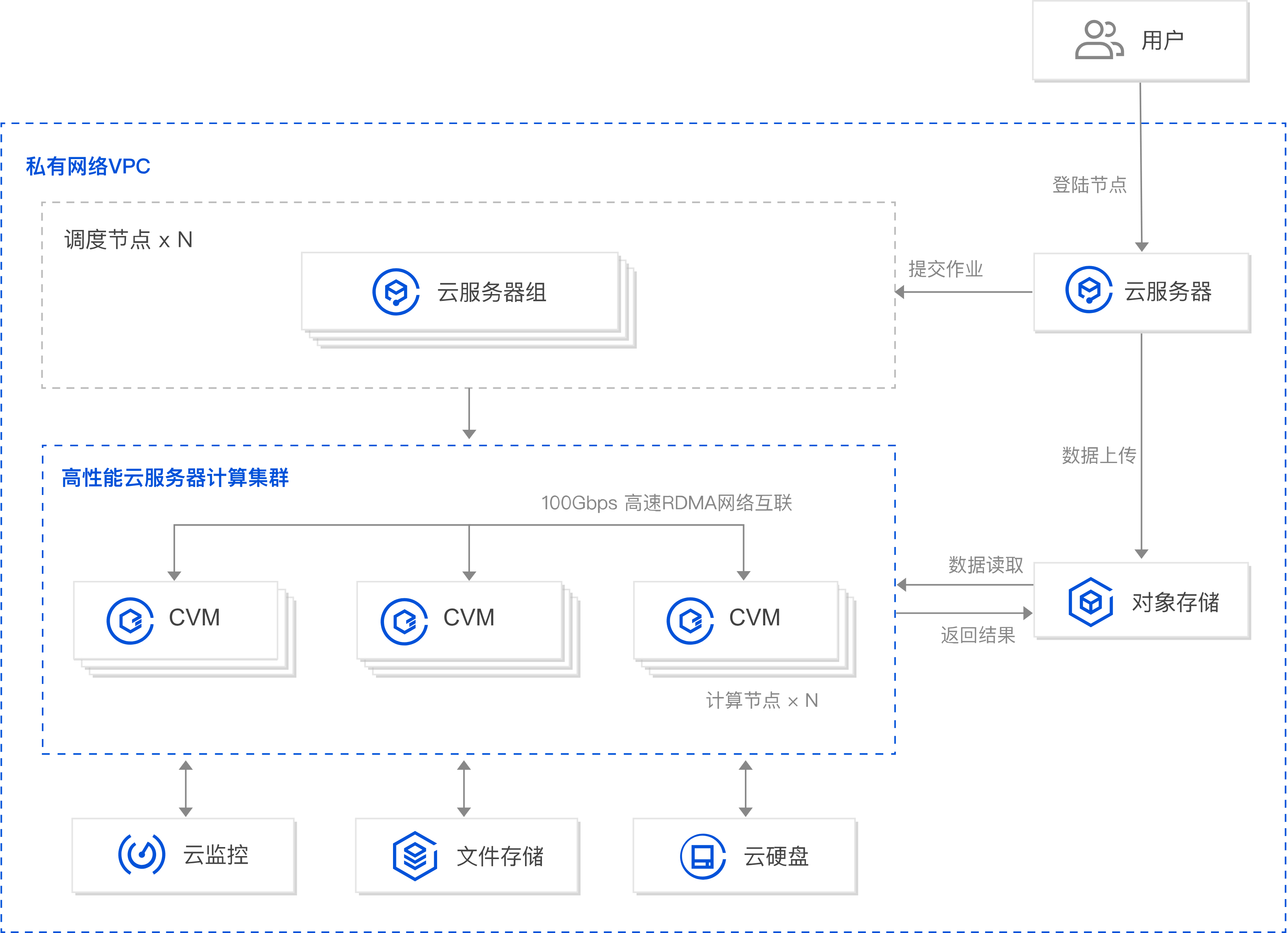 Based on the elastic high-performance CVM architecture, Hyper Computing Cluster can achieve zero virtualization loss in computing and preserve server characteristics, supporting fully automated production and elastic scaling, while combining flexible elasticity and extreme performance.