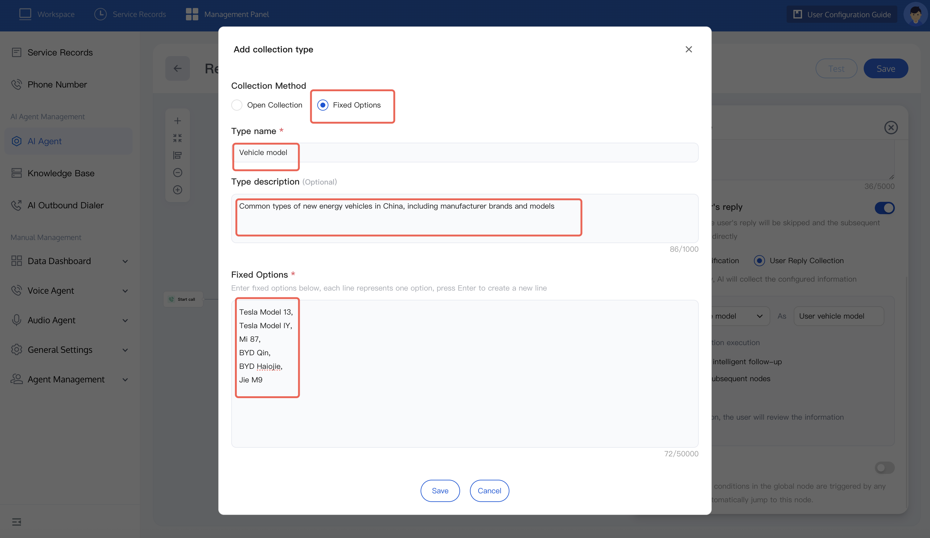 Path: Click Collection > Add > Fixed Option. Under this setting, the system will automatically collect user responses to such problems and tag them.