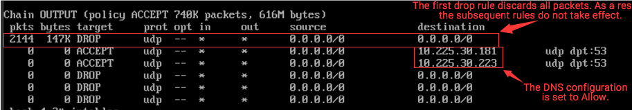 execute o seguinte comando para excluir a primeira regra de saída: Teste para verificar se o problema foi resolvido.