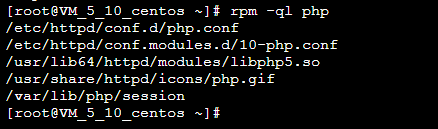 Por exemplo, execute rpm -ql php para exibir o diretório de instalação do PHP, conforme mostrado na figura abaixo: