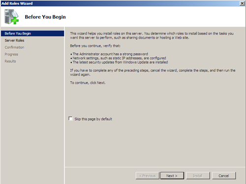 4. Clique em Next (Avançar) na janela "Add Roles Wizard (Assistente para adicionar funções)", conforme mostrado abaixo: