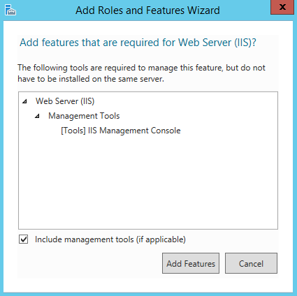 A caixa de diálogo "Add features that are required for Web Server (IIS) (Adicionar recursos necessários para servidor web (IIS))" será exibida.