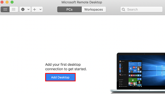 1. Inicie o MRD e clique em Add Desktop (Adicionar área de trabalho), conforme mostrado abaixo: