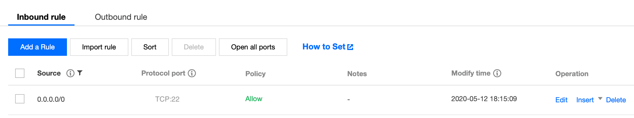 Antes de modificar a porta remota padrão, recomendamos que você adicione o número da porta SSH e teste se ela foi conectada ao CVM. Em seguida, exclua a porta padrão 22. Certifique-se de que a porta padrão 22 não possa ser conectada ao CVM quando a nova porta falhar ao se conectar ao CVM.