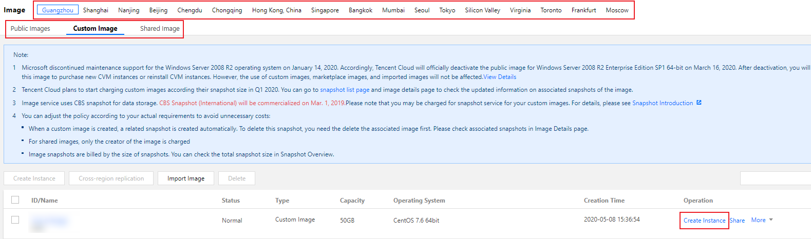 É possível usar uma imagem personalizada para criar instâncias do CVM do mesmo sistema operacional, aplicativos e dados para melhorar a eficiência. Este documento o orienta em como criar uma instância usando uma imagem personalizada.