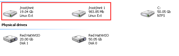 1. Execute o DiskInternals Linux Reader para exibir as informações do disco de dados recém-montado. /root/mnt e /root/mnt1 correspondem a vdb1 e vdb2 respectivamente, que são as duas partições de disco de dados no CVM do Linux antes da reinstalação, conforme mostrado abaixo:
