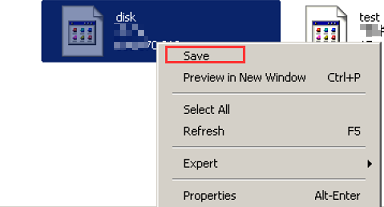 Observe que o disco de dados do Linux é somente leitura neste momento. Para realizar operações de leitura e gravação no disco de dados como você faz em um do Windows, faça backup dos arquivos necessários e reformate o disco em um sistema de arquivos padrão com compatibilidade com o Windows. Para obter mais informações, consulte Partição de disco de dados e formatação de CVMs do Windows. 2. Clique duas vezes para acessar o diretório /root/mnt, clique com o botão direito do mouse no arquivo que deseja copiar e selecione Save (Salvar) como mostrado abaixo: