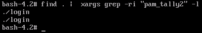 3. Execute os comandos a seguir em sequência para abrir o diretório /etc/pam.d e procurar pam_tally2.