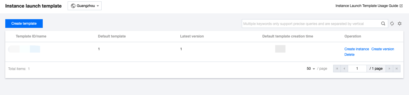 3. Entre na página de criação do modelo de inicialização de instância, Nome do modelo e Descrição do modelo podem ser personalizados para preenchimento;para outras configurações, consulte Criar uma instância por meio da página de compra para configurar. 4. Na etapa de confirmação das informações de configuração , leia e marque a caixa para concordar com o “Contrato de serviço da Tencent Cloud” e as “Instruções de compra” , clique em Criar agora . Após a criação bem-sucedida, pode visualizar o modelo de inicialização de instância no console. Mostrado na figura abaixo: