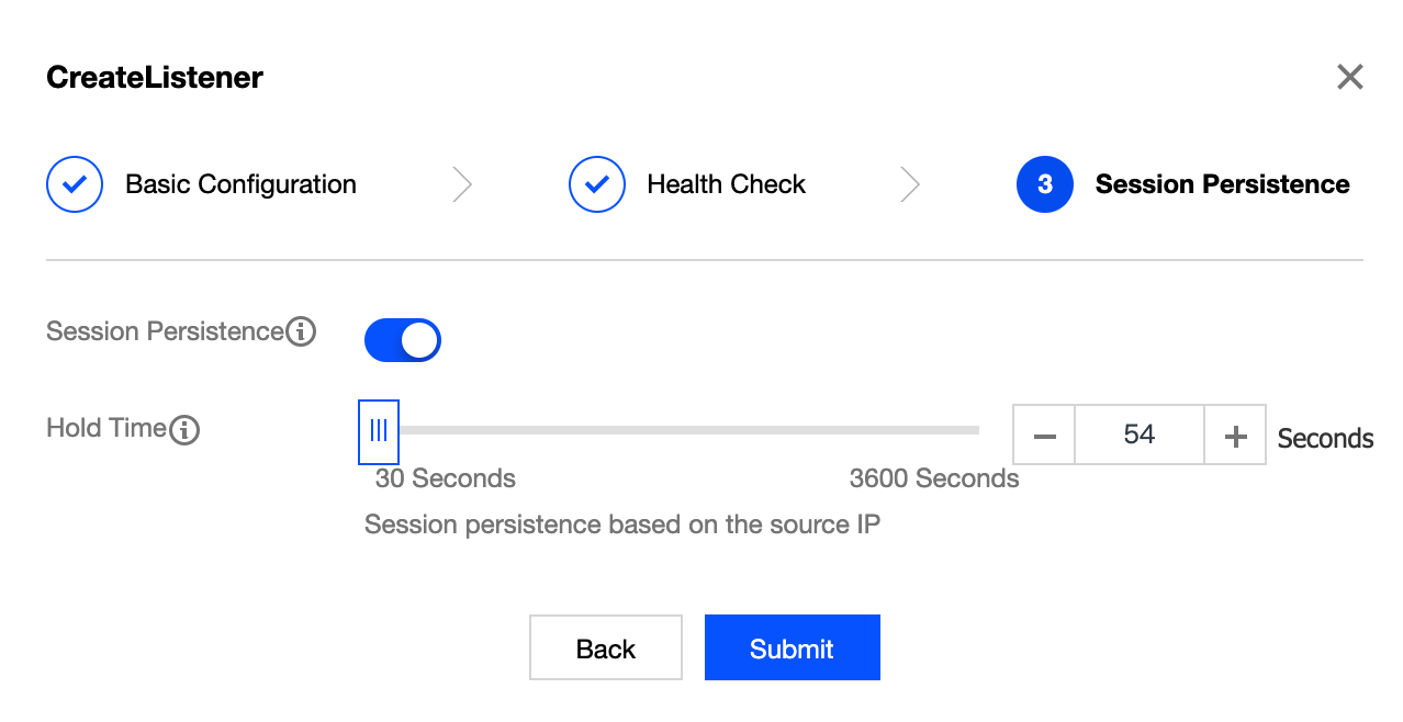 4. Configurar a persistência da sessão: habilite a persistência da sessão, configure o período de persistência e clique em Submit (Enviar).
