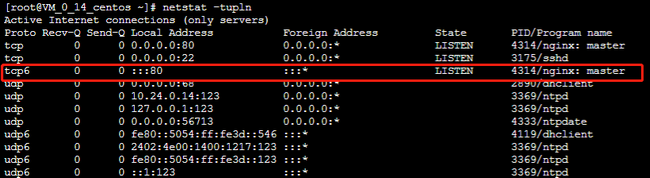 se o serviço Nginx implementado na instância do CVM está escutando no IPv6. 3.1 Execute o seguinte comando para verificação.