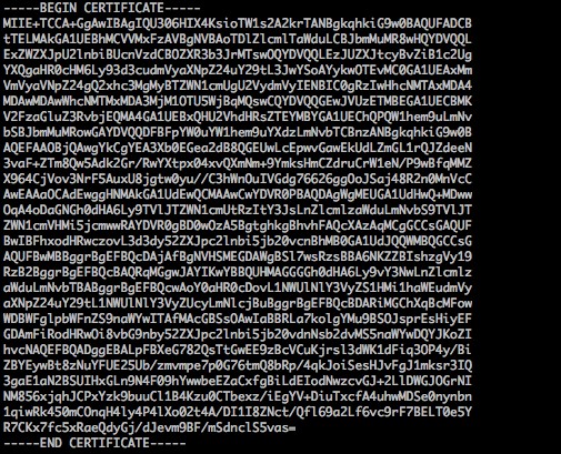 Se o seu certificado tiver uma cadeia de certificados, converta-o para o formato PEM e mescle com o conteúdo do certificado para upload.