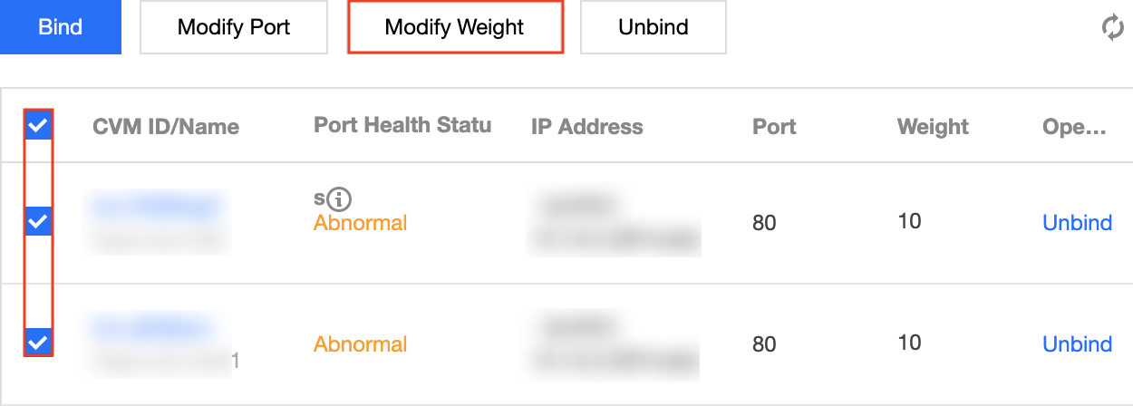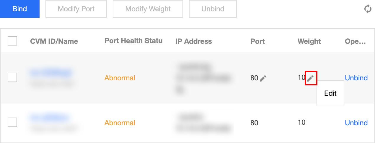 Você pode modificar a porta do servidor de back-end no console do CLB. Veja abaixo como modificar o peso do servidor de back-end com "listeners HTTP/HTTPS" como um exemplo (que pode ser modificado para listeners TCP/UDP/TCP SSL da mesma maneira).