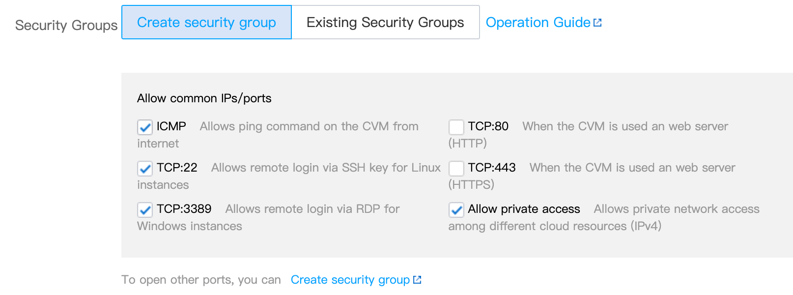 3. Na página de configuração personalizada, configure a instância da CVM e clique em Buy Now (Comprar agora). As configurações de rede da CVM são as seguintes: