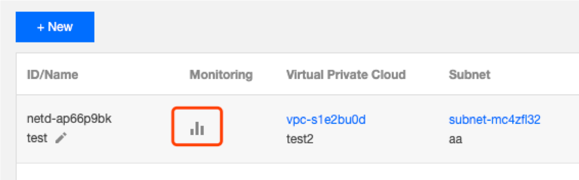 3. Clique no ícone de monitoramento da instância de sonda de rede em questão para exibir sua latência e taxa de perda de pacotes.