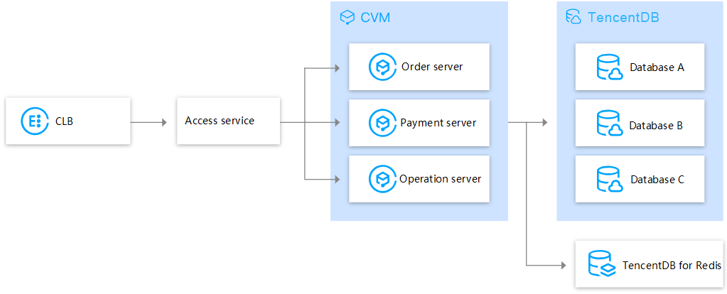 O TencentDB for MySQL pode servir como meio de armazenamento de dados do servidor em aplicativos Web e móveis. Para cenários em que há mais leituras do que gravações, é possível criar instâncias somente leitura para bancos de dados que são lidos com frequência, o que melhora muito o desempenho de leitura.