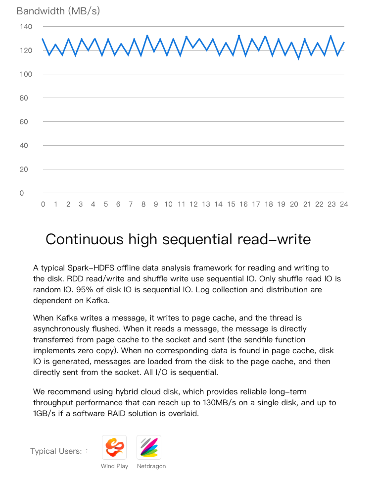 Em uma estrutura de análise de dados offline comum do Spark-HDFS, as leituras/gravações de RDD e as gravações aleatórias de discos são todas de E/S sequencial, exceto para a E/S de leitura aleatória. A E/S sequencial é responsável por 95%. O CBS apresenta um excelente desempenho de taxa de transferência simultânea multithread, permitindo o processamento de dados offline eficiente nos níveis de terabyte e petabyte para Hadoop-Mapreduce, HDFS e Spark.