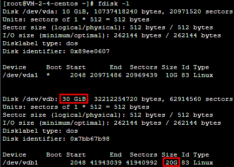 Considerando o caminho do disco /dev/vdb como exemplo, execute o seguinte comando: