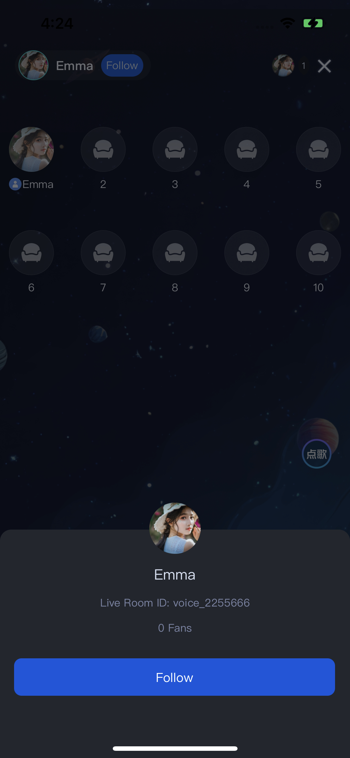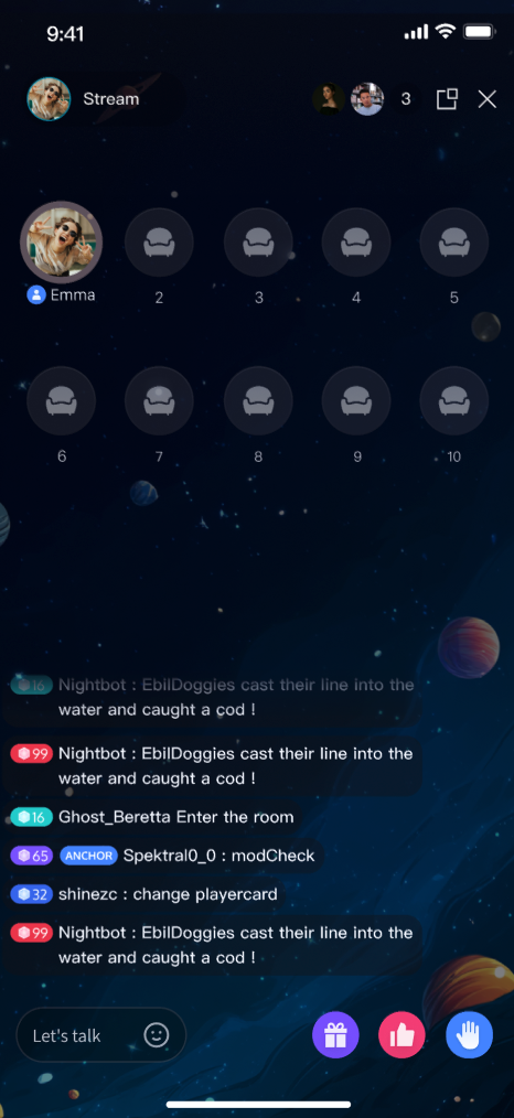 TUILiveKit Voice Chat Room provides a comprehensive, ready-to-use interface for pure audio live streaming scenarios. It allows you to quickly implement essential features such as audience listening and mic interaction, eliminating the need to manage complex UI or seat management logic yourself.