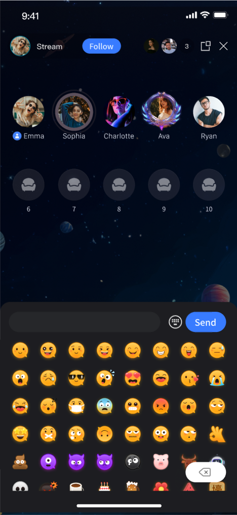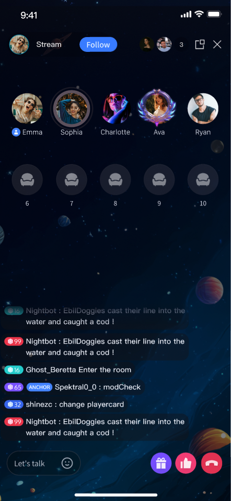 Live Interaction: Engage with features such as bullet comments, gifts, and likes.