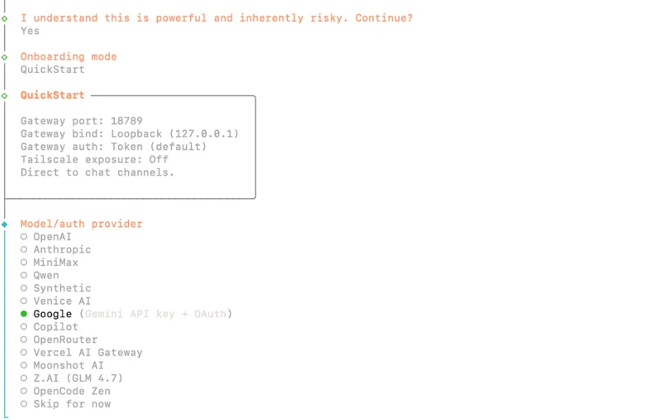 Google (Gemini) is chosen because it provides an official and stable API, good model quality for general reasoning and agent tasks, and straightforward integration using an API key without complex custom configuration.