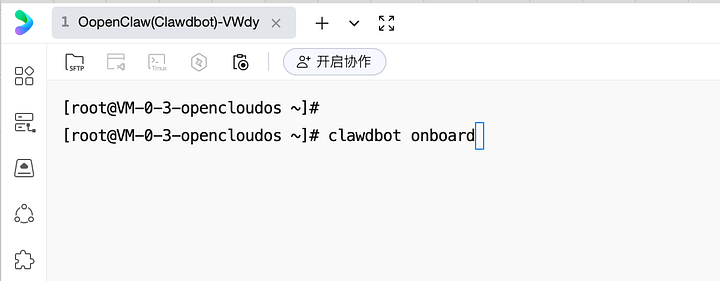 The interface after successfully logging into the server via the remote terminal OrcaTerm is shown below. You can then use the OrcaTerm terminal tool to perform various operations within the server’s operating system, such as uploading and downloading files. Alternatively, you can execute the commands “clawdbot onboard” or “openclaw onboard” to access the OpenClaw configuration tool.