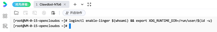 If the following effect appears after running this script, it means that the configuration is successful. You can then safely close the remote terminal (OrcaTerm) page that executed the aforementioned commands without worrying that the OpenClaw service will terminate after closing the terminal.